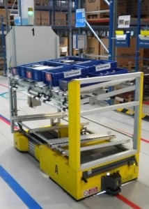 I veicoli a guida automatica (AGV) seguono percorsi preimpostati muovendosi dall’area magazzino (o area picking) fino alle linee di montaggio e lavorazione, e viceversa (realizzando un Kanban in modo ottimale).